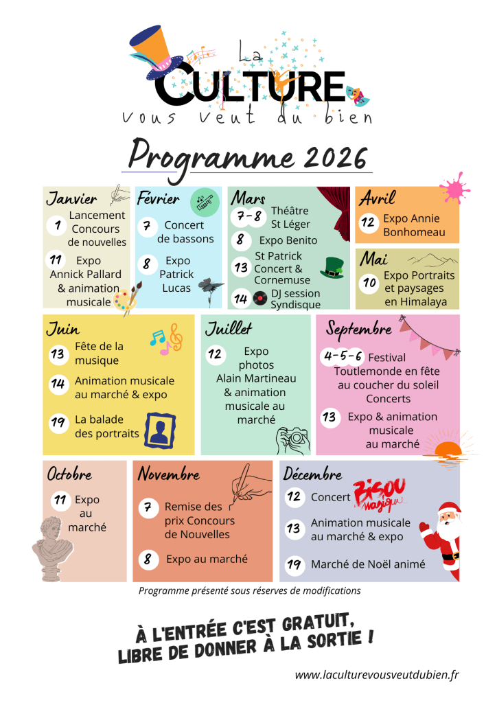 « La CULTURE vous veut du bien » est un club de l’association ACTT qui a pour but de promouvoir la culture et la rendre accessible à tous. Toute l’année l’association organise des animations dans la commune autour du spectacle culturel de tout genre et pour tout public.