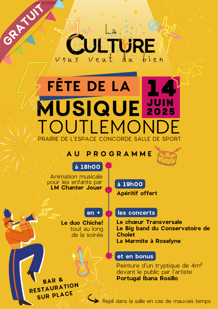 Comme chaque année au mois de juin, Toutlemonde célèbre la Fête de la Musique. Pour cette édition, l’événement change de décor et s’installe dans la prairie de l’Espace Concorde, près de la salle de sport.